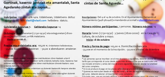 Inskripzioa: Urriaren 4tik 14ra. Udaletxean, Udaletxera deituz (948-562446) edo olazti@olazti.com helbidera idatziz. Gutxieneko kopurua: 8 pertsona Gehieneko kop...