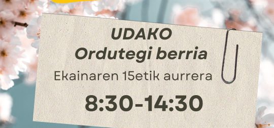 Heldu den ekainaren 15etik aurrera, ostirala Udako egutegia Behin behineko telefonoa 948 37 14 44